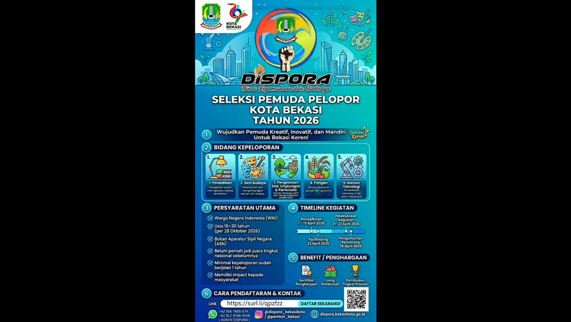 Kabar baik buat kamu warga Kota Bekasi. Dinas Kepemudaan dan Olahraga Kota Bekasi resmi membuka Seleksi Pemuda...